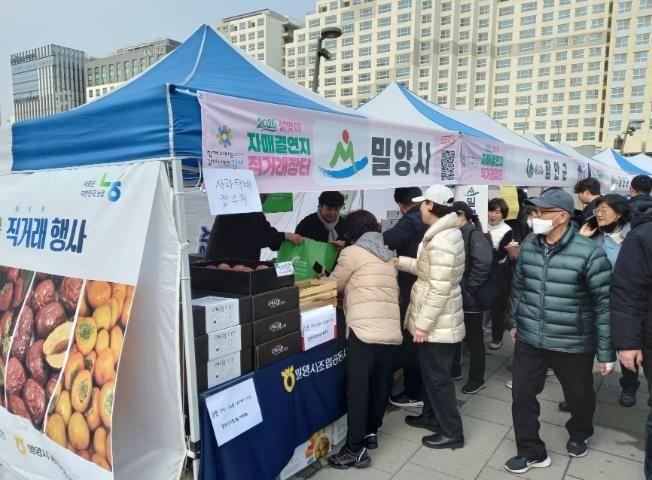 이번 장터는 설 명절을 앞두고 유동 인구가 많은 휴게소에서 밀양의 우수 농특산물을 홍보하고 판매해 농가 소득 증가와 판로 확대를 지원하고자 마련됐다.