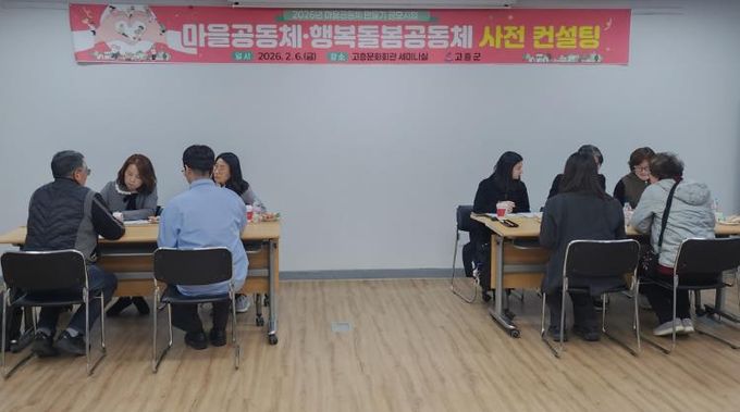 [경남도민뉴스=최인태 기자] 고흥군은 6일 고흥문화회관 세미나실에서 2026년 마을공동체 공모사업에 선정된 공동체를 대상으로 사업의 방향성과 실행력을 높이기 위한 사전 컨설팅을 실시했다고 밝혔다.