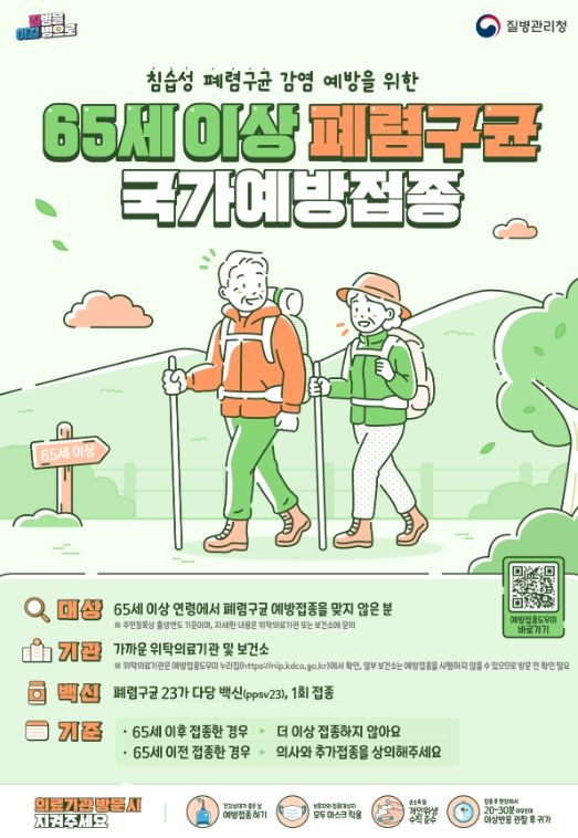보건당국에 따르면 폐렴구균 예방접종은 평생 1회 접종만으로도 중증 합병증 발생 위험을 크게 낮출 수 있어 예방접종을 적극 권장하고 있다.