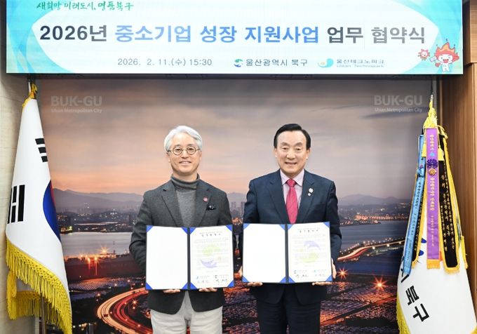[경남도민뉴스=최재경 기자] 울산 북구는 11일 구청장실에서 울산테크노파크와 2026년 중소기업 성장 지원사업 업무협약을 체결했다.