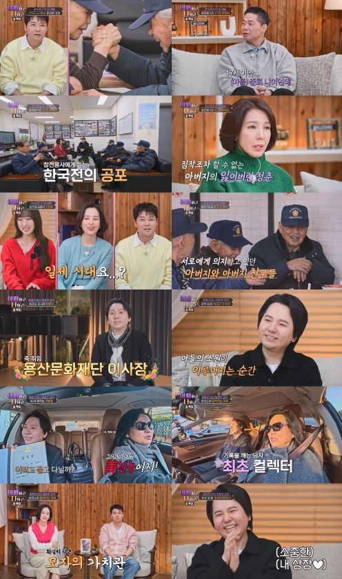 [경남도민뉴스=서용재 기자] TV CHOSUN '아빠하고 나하고 시즌3'에서 설 명절을 맞아 배우 전수경이 97세 아버지가 있는 6·25 참전유공자 모임에 함께했다. 또 ‘팝페라의 거장’에서 용산문화재단 역대 최연소 이사장으로 공직에 첫발을 내디딘 임형주가 열애 상대(?) ‘상장’을 놓고 어머니 헬렌 킴과 티격태격하는 일상을 선보였다. 이날 방송 전국 시청률은 3.2%, 분당 최고 시청률은 3.8%(닐슨코리아, 이하 전국 기준)까지 치솟으며 동시간대 종편 예능 시청률 1위를 기록했다.