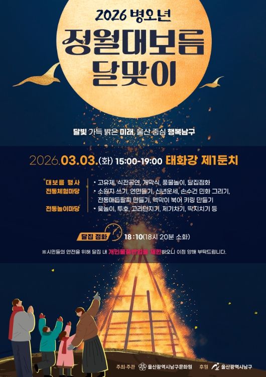 남구 관계자는 “정월대보름은 예로부터 이웃과 함께 마음을 나누며 한 해의 평안과 풍요를 기원해 온 소중한 세시풍속이다”며 “이번 행사가 주민들에게 전통문화의 의미를 되새기고 가족·이웃과 따뜻한 추억을 나누는 시간이 되길 바란다”고 전했다.