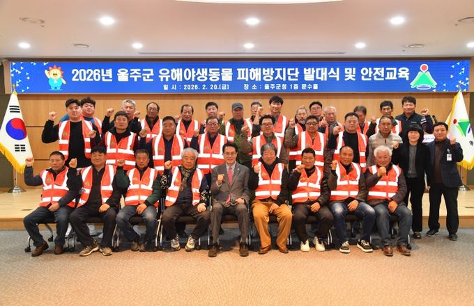 [경남도민뉴스=최재경 기자] 울산 울주군이 20일 군청 문수홀에서 ‘2026년 유해야생동물 피해방지단’ 발대식과 안전교육을 실시했다.