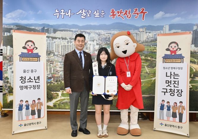 [경남도민뉴스=최재경 기자] 울산 중구가 2월 24일 성신고등학교 1학년 김하은 학생을 ‘1일 청소년 명예구청장’으로 위촉했다.
