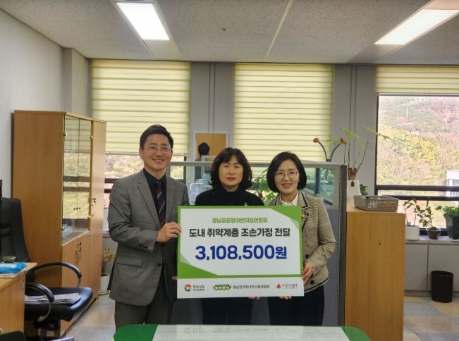 [경남도민뉴스=구인애 기자] 경남도는 25일 경남공공형어린이집연합회(회장 위정숙)가 가정위탁 조손가정을 위해 성금 310만 8천500원을 기탁했다고 밝혔다.