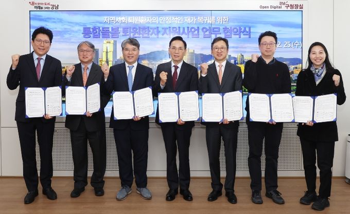 [경남도민뉴스=김완호 기자] 꿈이 모이는 도시, 미래를 그리는 강남구가 퇴원 이후 돌봄 공백을 줄이고 지역사회 중심의 돌봄 체계를 강화하기 위해 2월 25일 구청에서 관내 6개 의료기관과 '통합돌봄 퇴원환자 지원사업' 추진을 위한 업무협약(MOU)을 체결했다. 협약 기관은 삼성서울병원, 연세대학교의과대학 강남세브란스병원, 강남베드로병원, 나누리병원, 메드렉스병원, 강남구립행복요양병원이다.