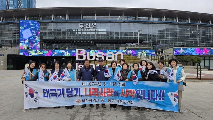 [경남도민뉴스=신석주 기자] 부산광역시 중·동구재향군인회는 지난 2월 26일 부산역 일원에서 제107주년 3·1절을 기념해 태극기 나눔 행사를 개최했다.