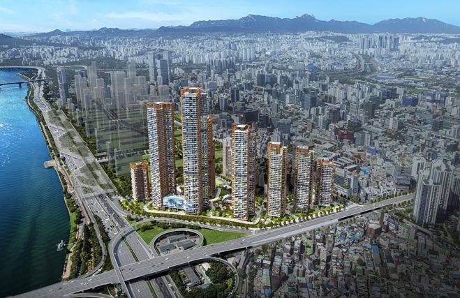 단지는 한강변으로 10~40m 규모의 통경축을 확보한 열린 배치로 개방적 경관을 형성한다. 성수역에서 한강까지 이어지는 선형공원을 조성해 문화와 자연이 어우러지는 주거환경을 만든다.