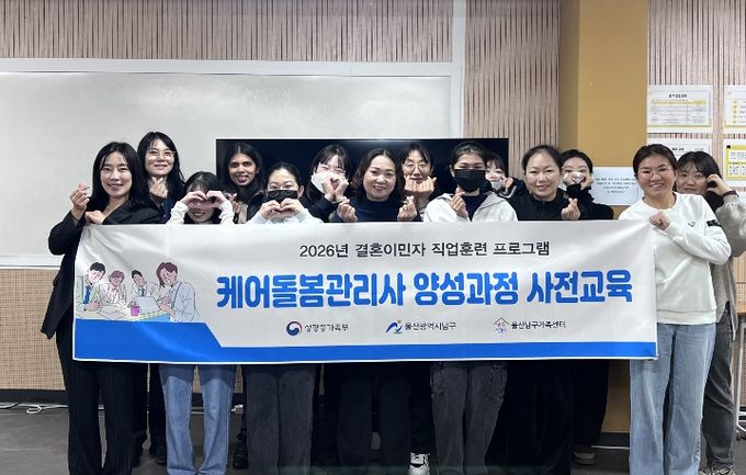 [경남도민뉴스=최재경 기자] 울산 남구가 결혼이민자의 안정적인 사회 정착과 경제적 자립을 돕기 위한 전문 취업지원 사업인 ‘2026년 결혼이민자 취업지원(케어돌봄관리사 양성과정)’을 27일부터 본격 시작했다.