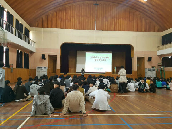 아동·청소년 5대 폭력 통합예방교육 전문 강사가 직접 학교로 찾아가가는 교육으로, 지금까지 지역아동센터 및 초·중·고 8개교에서 실시됐다. 지난 12일에는 단성중학교 전교생을 대상으로 교육이 진행됐다.