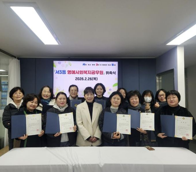 [경남도민뉴스=신석주 기자] 부산 금정구 서3동은 지난 2월 26일 지역 내 복지 사각지대 해소를 위한 '서3동 명예사회복지공무원 위촉식'을 개최했다.