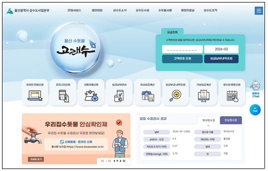 상수도사업본부 관계자는 “이번 누리집 개편을 통해 시민들의 접근성과 이용 편의성이 크게 향상될 것으로 기대한다”라며 “앞으로도 인공지능(AI) 수도 울산에 걸맞은 대민 행정을 지속적으로 확대해 나가겠다”라고 말했다.