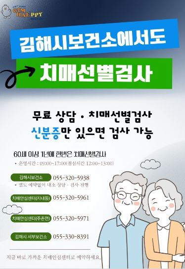 [경남도민뉴스=최미정 기자] 김해시는 김해시보건소에서도 치매선별검사를 받을 수 있다고 6일 밝혔다.