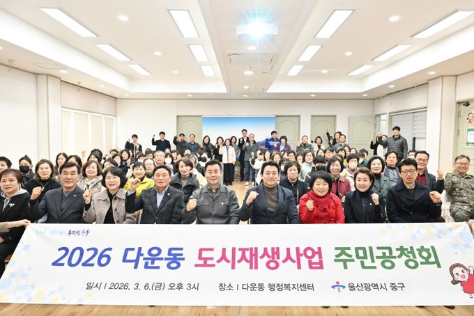 [경남도민뉴스=최재경 기자] 울산 중구가 3월 6일 오후 3시 다운동 행정복지센터 2층 강당에서 ‘다운동 도시재생 활성화계획’ 변경 수립을 위한 주민공청회를 개최했다.