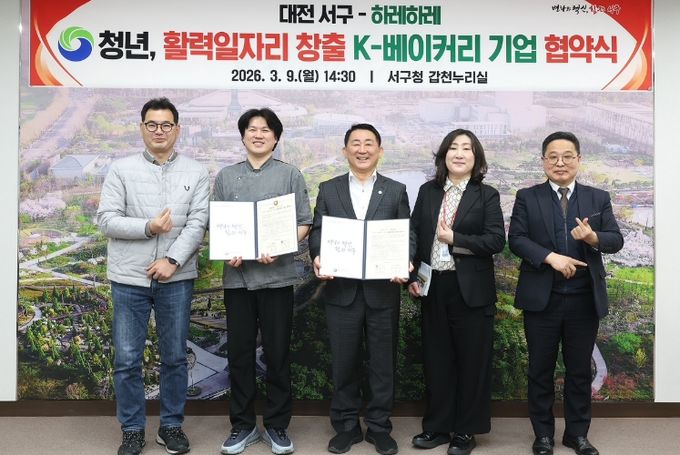 [경남도민뉴스=도문호 기자] 대전 서구는 청년활력일자리창출 11번째 협약 기업으로 지역 대표 K-베이커리 하레하레(대표 이창민)를 선정하고 ‘2026년 청년 활력 일자리 창출’을 위한 업무협약을 체결했다고 10일 밝혔다.