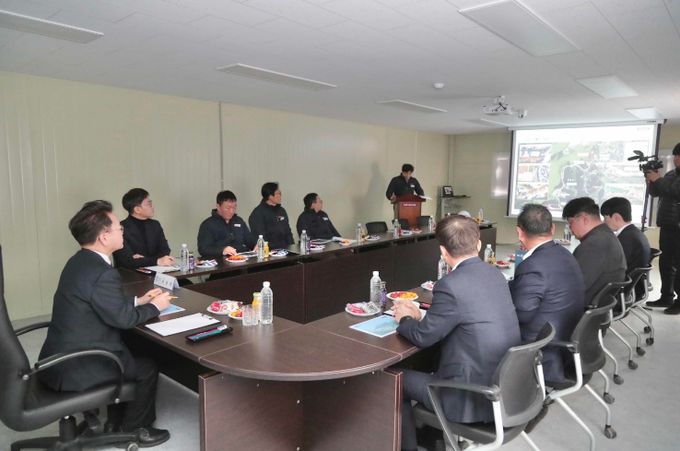 육 시장은 공사 착공을 앞두고 현장사무소에서 사업 추진 현황에 대한 브리핑을 받은 뒤 공사 예정지와 주요 시설 설치 예정 구간을 둘러보며 공사 준비 상황과 안전 관리 실태를 점검했다. 이 자리에서 육동한 시장은 지역 업체의 장비와 소재, 부품 등을 사용할 것을 강조하고 해빙기 지반 약화 등으로 발생할 수 있는 안전사고 예방을 당부했다.