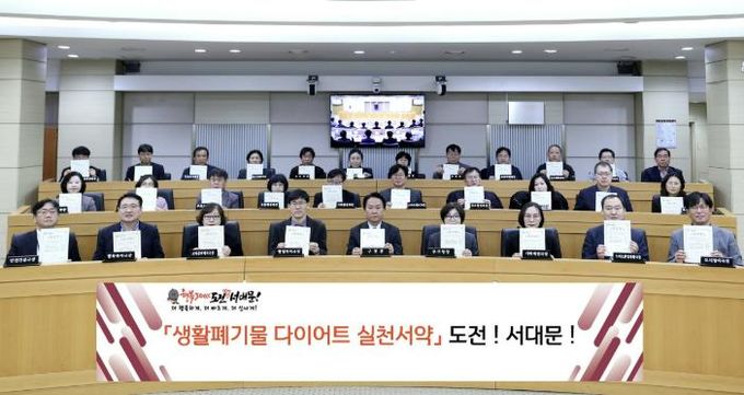 [경남도민뉴스=김완호 기자] 서대문구가 이달 12일 구청 대회의실에서 간부 직원들이 참여한 가운데 ‘생활폐기물 다이어트 실천 서약 챌린지’를 진행했다.
