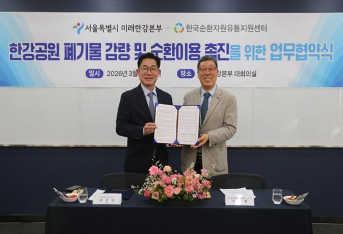 [경남도민뉴스=서용재 기자] 서울시 미래한강본부가 12일 한강공원 내 폐기물 감량 및 순환이용 촉진을 위해 폐기물 재활용 분야 전문기관인 한국순환자원유통지원센터(KOrea Resource circulation service Agency, KORA)와 업무협약을 체결했다.