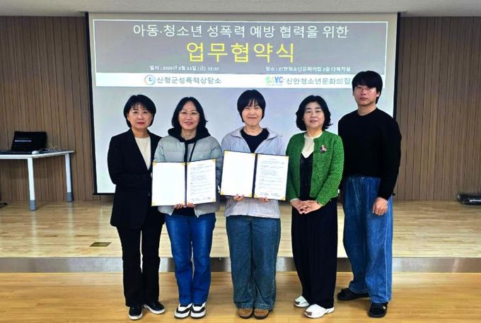[경남도민뉴스=김태수 기자] 산청군성폭력상담소와 신안청소년문화의집은 아동·청소년을 성폭력으로부터 보호하고 피해 발생 시 신속한 지원과 회복을 돕기 위한 업무협약을 체결했다고 16일 밝혔다.