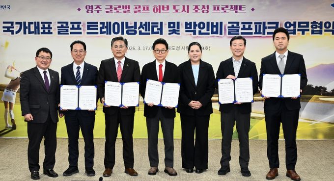 [경남도민뉴스=오창경 기자] 경상북도는 3월 17일 경북도청에서 ‘영주 국가대표 골프 트레이닝 센터 및 박인비 골프파크 조성사업을 위한 업무협약’을 체결하고 ‘영주 글로벌 골프 허브 도시 조성 프로젝트’를 본격 가동한다.