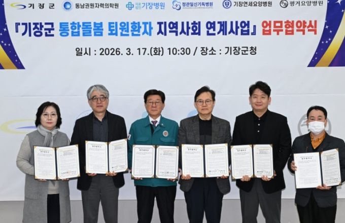 [경남도민뉴스=신석주 기자] 기장군은 지난 17일 관내 5개 의료기관과‘통합돌봄 퇴원환자 지역사회 연계사업’추진을 위해 업무협약을 체결했다고 18일 밝혔다.