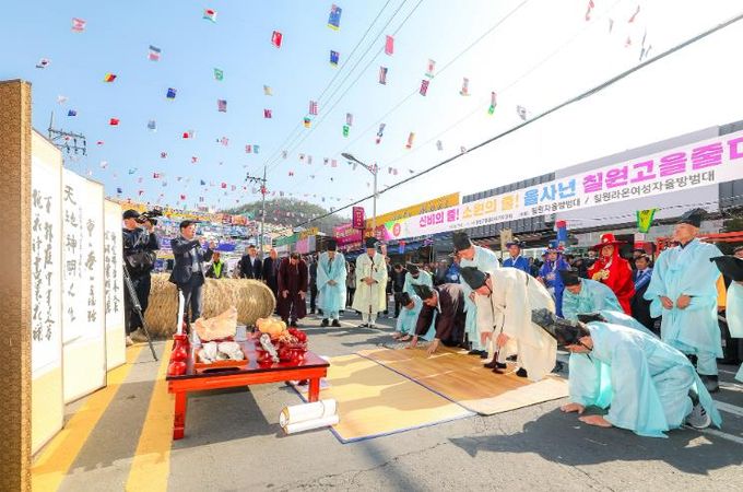 칠원고을줄다리기 행사는 주민 화합의 장을 마련하고 한 해의 풍요와 안녕을 기원하기 위해 열리던 전통 민속행사로, 1960년대까지 매해 음력 2월 초하루에 칠원읍 용산천에서 이어져 왔다.