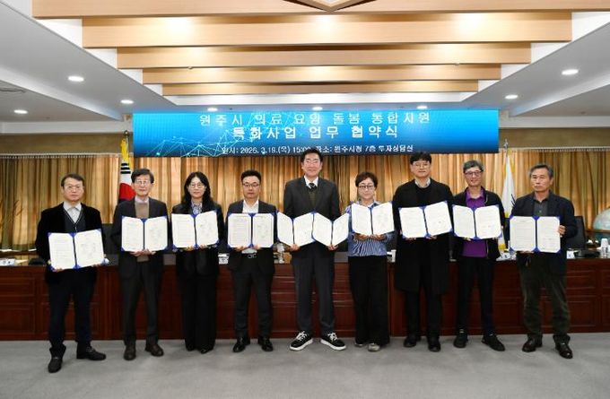 [경남도민뉴스=류종길 기자] 원주시는 지난 19일 시청에서 ‘의료·요양·돌봄 통합지원’ 특화사업 추진을 위한 업무협약식을 개최했다.