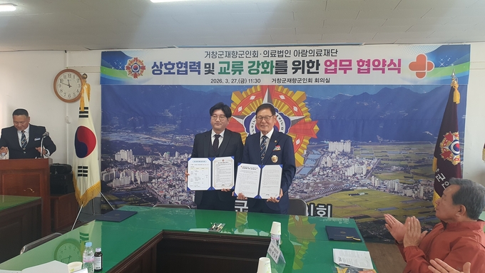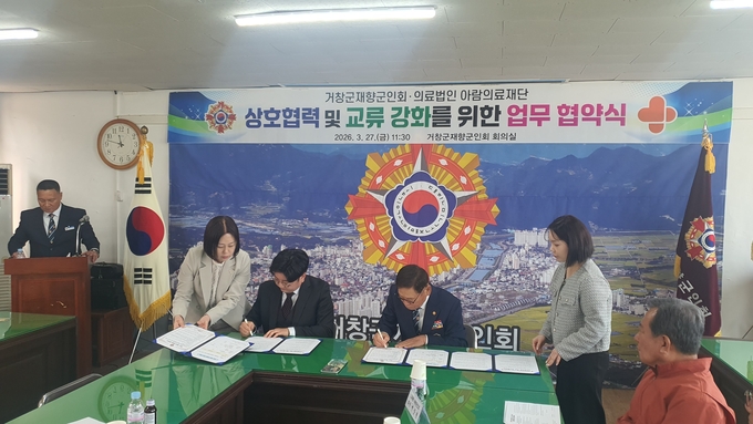 [경남도민뉴스=백형찬 기자] 거창군재향군인회와 의료법인 아람의료재단이 상호 협력과 지역사회 발전을 위한 업무협약(MOU)을 체결했다. 이번 협약으로 양 기관은 보훈 가족 복지 증진과 지역사회 공헌 확대에 본격 나선다.