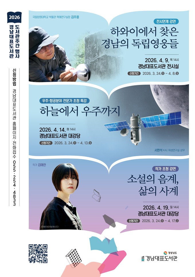 강순익 경남대표도서관장은 “이번 도서관주간은 다양한 프로그램을 통해 도민들이 일상에서 즐거움과 성장을 느낄 수 있도록 준비했다”라며, “도민들의 많은 참여를 바란다”라고 말했다.