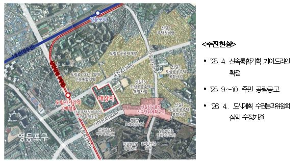 대상지 일대는 ’07년 신길재정비촉진지구로 결정됐다가 사업추진이 부진하여 ’14년 해제된 지역으로 노후된 단독·다세대주택이 혼재되어 있고, 보행환경이 열악한 주택지이다. 2024년 3월 후보지 선정 이후 분야별 전문가들이 참여하여 마련한 신속통합기획 가이드라인을 반영하여 정비계획을 수립했으며,