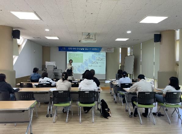 이번 교육에서는 서유진 리드언어학습상담센터장이 강사로 나서 영유아 언어발달 검사(SELSI)의 개요와 영유아의 언어 발달 과정 등을 설명했다.