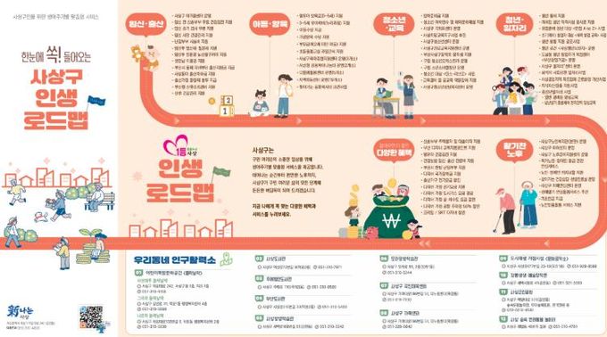 사상구 관계자는 “다양한 인구정책을 한눈에 보고 누릴 수 있도록 제작한 사상구 인생 로드맵을 필요한 혜택을 찾아가는 유용한 길잡이로 활용하시길 기대한다”고 말했다.
