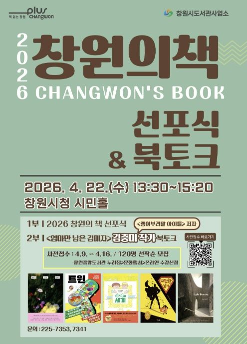 [경남도민뉴스=박민호 기자] 창원특례시 도서관사업소는 오는 4월 22일 오후 1시 30분, 창원시청 시민홀에서 시민들과 함께하는 ‘2026 창원의 책’ 선포식을 개최한다고 밝혔다.