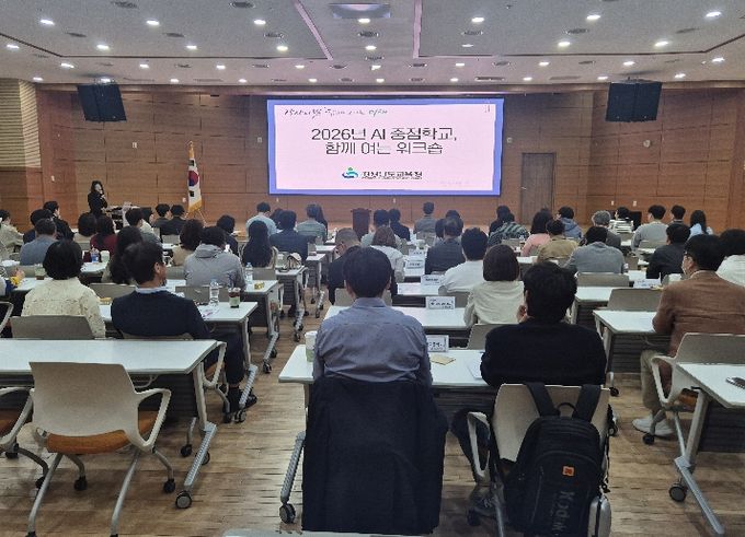 워크숍은 인공지능 중점학교 운영의 내실을 다지고자 ▲2026년 인공지능 중점학교 운영 및 예산 집행 기준 안내 ▲운영 과제별 사례 공유 및 질의응답 ▲분임별 토의를 통한 학교 맞춤형 운영 방안 모색 순으로 진행됐다.