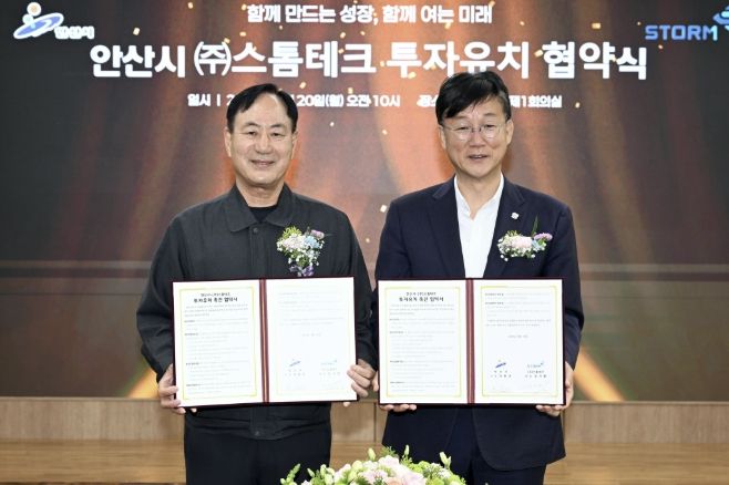 [경남도민뉴스=김동규 기자] 안산시는 지난 20일 코스닥 상장기업 ㈜스톰테크와 제2공장 신축 및 투자 확대를 위한 협약을 체결했다고 21일 밝혔다.