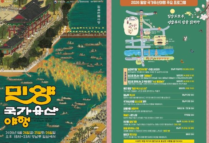 [경남도민뉴스=나희준 기자] 경남 밀양시가 주최하고 밀양시문화도시센터가 주관하는 ‘2026 밀양 국가유산 야행’이 오는 4월 24일부터 26일까지 3일간 영남루 및 밀양관아, 밀양강 일원에서 펼쳐진다.