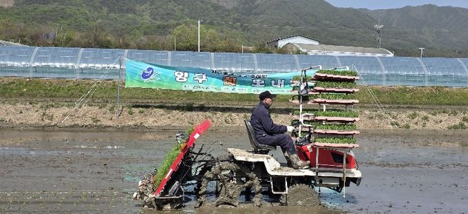 양구군은 이날 첫 모내기를 기점으로 관내 총 1,056ha 규모의 논에서 본격적인 벼 재배 작업에 돌입할 계획이다.
