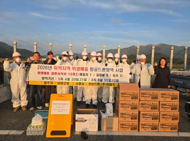한편, 남해군보건소는 5월 중 2차 드론 방역을 실시할 예정이며, 하절기 내 지속적인 방역활동을 통해 주민 건강 보호에 최선을 다할 방침이다.