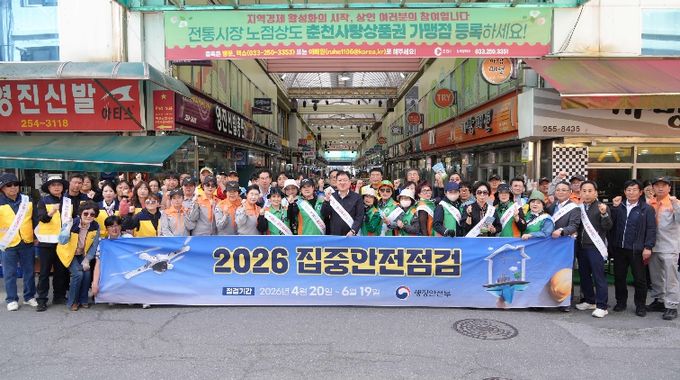 [경남도민뉴스=류종길 기자] 춘천시와 춘천소방서, 한국전기안전공사, 강원도시가스 등 관계기관이 23일 중앙시장 일원에서 ‘2026년 집중안전점검 및 안전점검의 날’ 합동 캠페인을 실시했다.