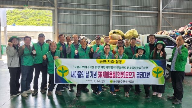 [경남도민뉴스=최재경 기자] 울산울주군새마을회(회장 송병열)가 협의회(회장 양갑규), 부녀회(회장 김옥희), 직장협의회(회장 김학준), 문고회(회장 안정애)와 함께 24일 울산 북구 동남상사에서 고유가 위기 극복을 위한 ‘2026년 상반기 3R 자원재활용 헌 옷 모으기 경진대회’를 개최했다.
