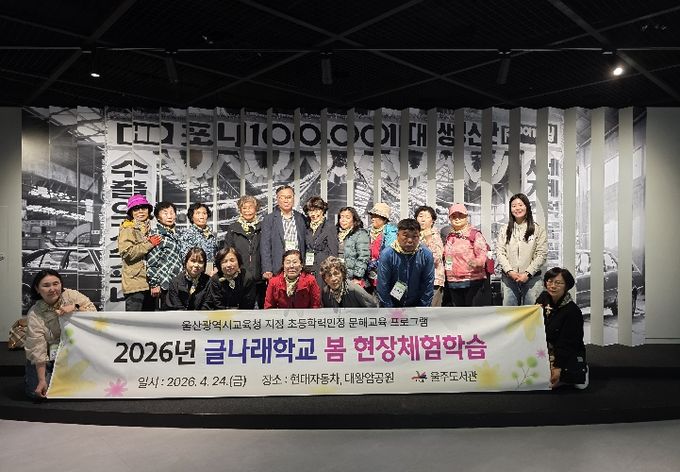 [경남도민뉴스=최재경 기자] 울산 울주도서관(관장 최종길)은 24일 현대자동차 울산공장과 대왕암공원에서 초등 학력 인정 문해교육 ‘글나래학교’ 학습자 20여 명을 대상으로 봄맞이 현장 체험학습을 진행했다.