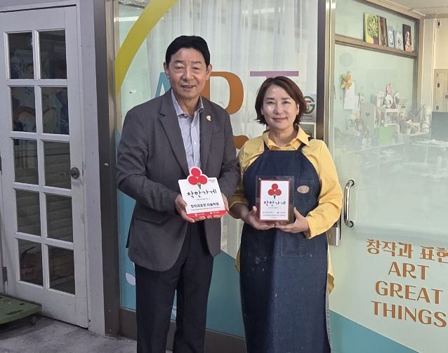 [경남도민뉴스=최미정 기자] (재)김해시복지재단 서부장애인종합복지관은 지난 4월 24일 창작과표현미술학원(대표 천현심)에 방문하여 '착한가게' 268호점 현판 전달식을 가졌다.