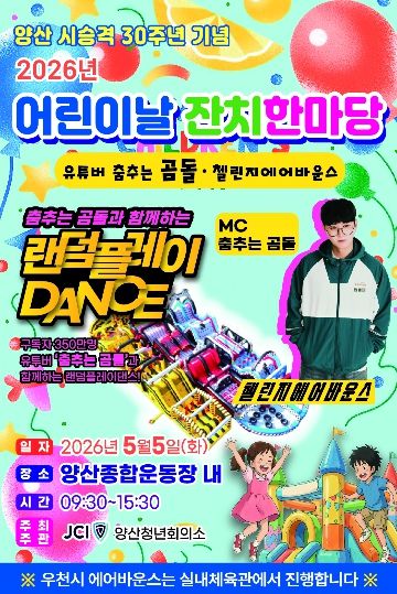 [경남도민뉴스=최미정 기자] 양산시는 5월 5일 9시 30분부터 15시 30분까지 양산종합운동장 주경기장에서 '2026년 어린이날 잔치 한마당' 행사가 개최된다고 밝혔다.
