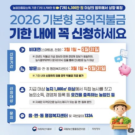 [경남도민뉴스=서용재 기자] 2026 기본형 공익직불금 기한 내에 꼭 신청하세요.