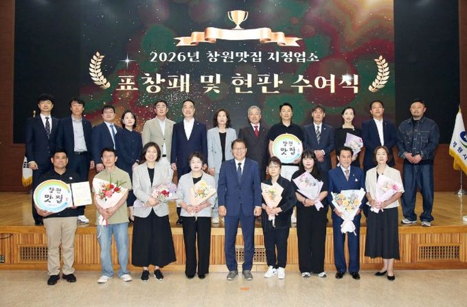 [경남도민뉴스=박민호 기자] 창원특례시는 4월 28일 창원맛집 지정을 10년 동안 유지한 업소 7개소에 대해 표창패와 특별 기념 현판을 수여하고, 2026년 신규 지정된 맛집 7개소에 지정서와 현판을 수여했다고 밝혔다.