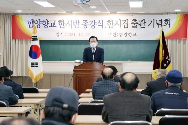 [경남도민뉴스] 함양군은 24일 오후 2시 함양유림회관 3층에서 서춘수 함양군수, 황태진 함양군의회 의장, 김재웅 도의원, 정상기 함양문화원장, 노봉희 성균관유도회 함양지부 회장 등 40여명이 참석한 가운데 함양향교 한시반 종강식 및 한시집 출판 기념회를 개최하였다고 밝혔다.