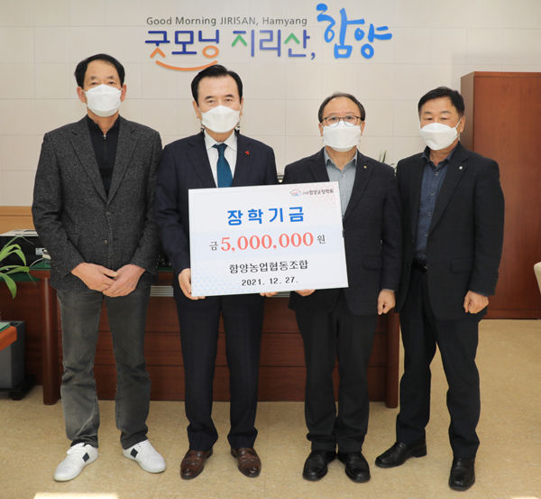 [경남도민뉴스] 함양군은 지난 27일 함앙농업협동조합(이하 함양농협)에서 함양군 인재육성에 보탬이 되고자 장학금 500만원을 기탁하였다고 밝혔다.