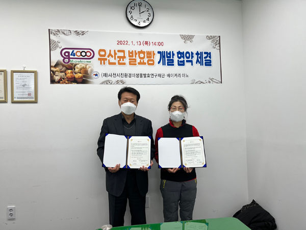 (재)사천시친환경미생물발효연구재단은 지난 7일 베이커리 마노와 미생물재단 종균을 활용한 천연발효빵 개발을 위한 업무협약을 체결했다고 14일 밝혔다.