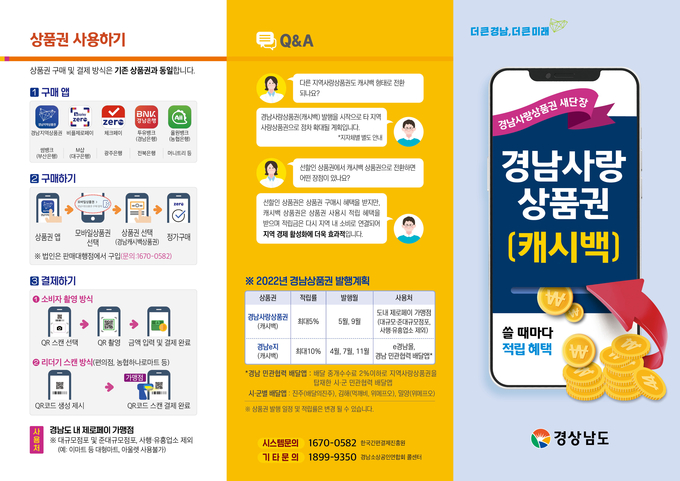 도는 경남사랑상품권을 선할인에서 캐시백형으로 전환 발행함에 따라 각종 홍보매체를 통해 집중 홍보를 실시하고 있으며, 경상남도소상공인연합회와 협력하여 경남사랑상품권 캐시백형 출시 기념 OX 퀴즈 이벤트도 함께 진행한다.
