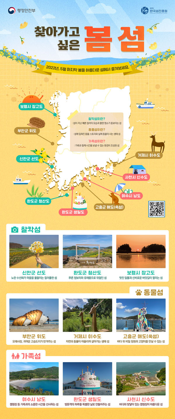 행정안전부는 이번 봄 섬에 이어 6월부터는 여름 섬, 9월 가을 섬, 12월 겨울 섬 등 계절별 여행가기 좋은 섬을 선정해 소개할 예정이며, 섬 한달살이 체험 등 참여 행사도 대폭 확대할 방침이다.